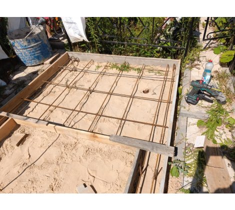 Включает в себя армировку 10-12 арматурой, заливка 10см