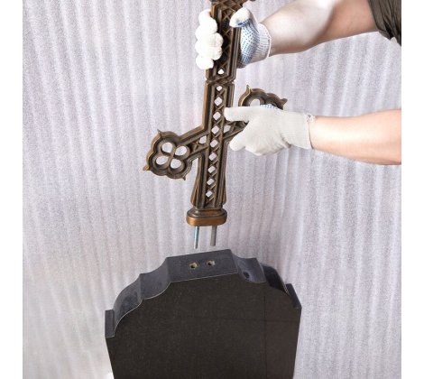 Крест может устанавливаться как на каменное основание, так и комплектоваться с нашими чугунными подставками: