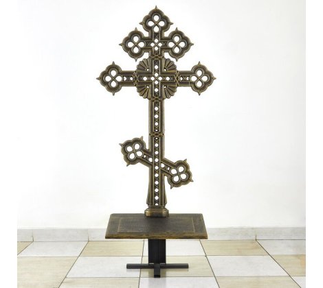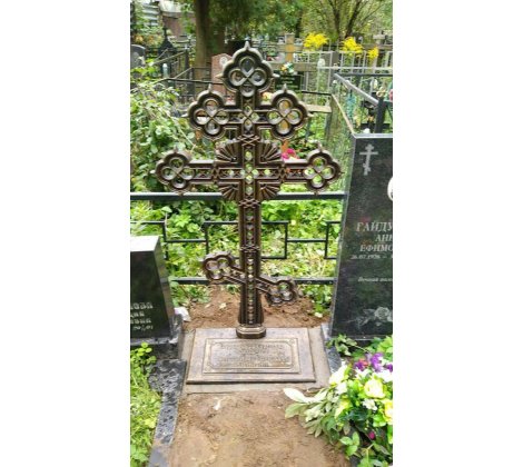 Крест может устанавливаться в землю с помощью чугунных подставок из нашего ассортимента: