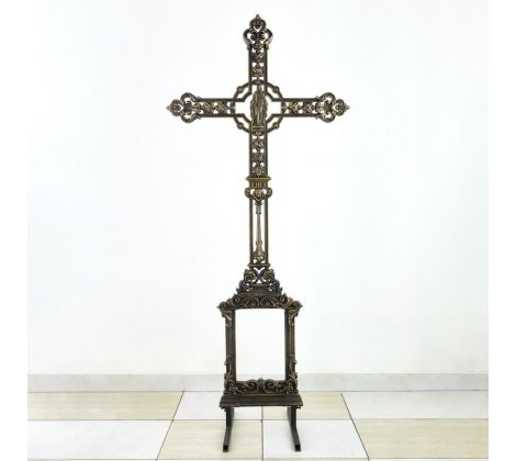 Крест комплектуется с нашей чугунной подставкой под крест №9 либо может быть установлено на каменное основание. Для установки на камень мы подготовим изделие, в основании креста будут установлены монтажные шпильки.