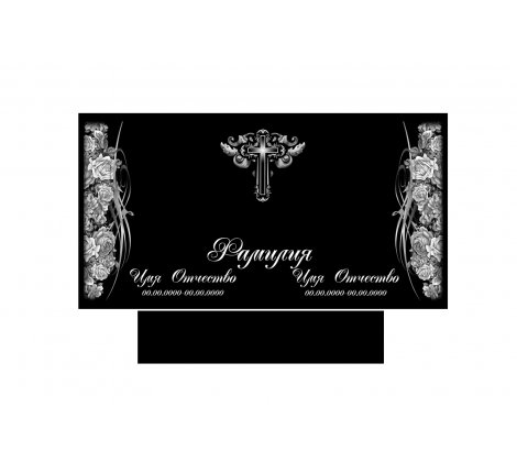Гравировка на горизонтальный памятник ГР-042 цветы, крест горизонтальный