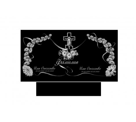 Гравировка на горизонтальный памятник ГР-029 цветы и крест