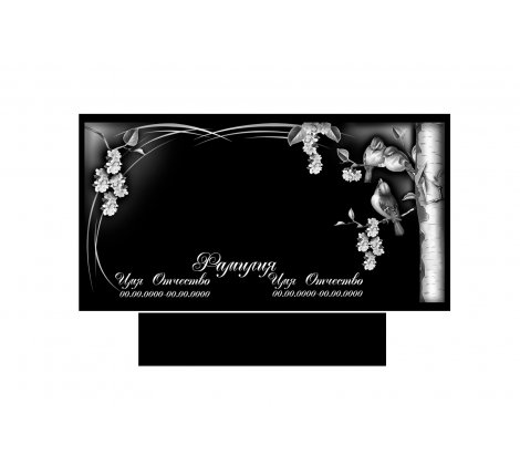 Гравировка на горизонтальный памятник ГР-023 с березой и птицами
