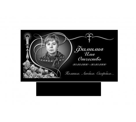 Гравировка на горизонтальный памятник ГР-039 сердце, свеча, розы