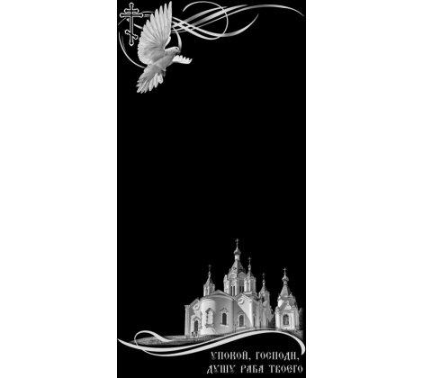 Гравировка на памятник В-3 с церковью, крестом и голубем