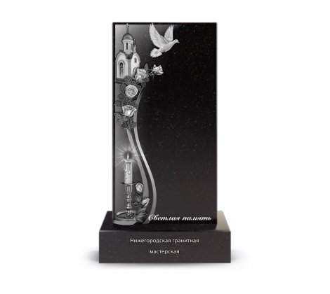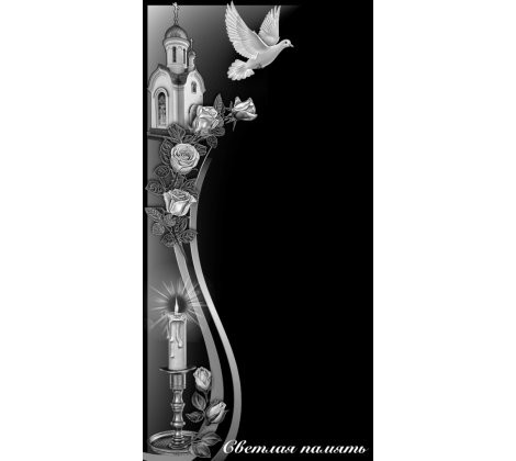Гравировка на памятник В-118 с церковью, свечой и голубем