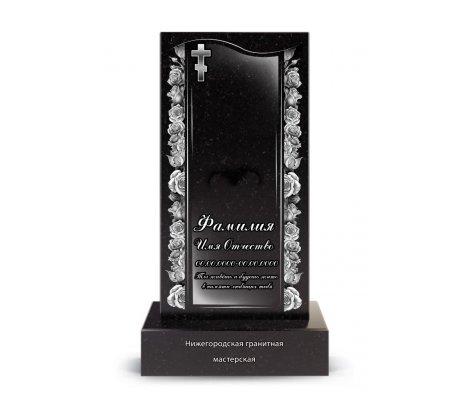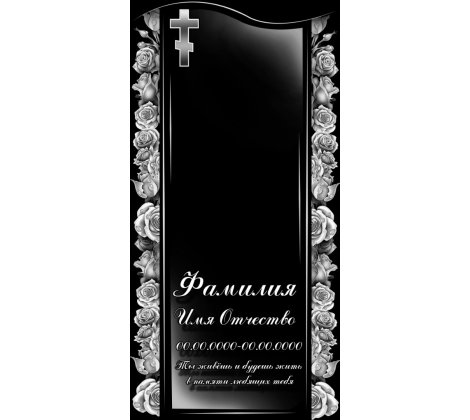 Гравировка на памятник В-74 с розами, рамкой и крестом