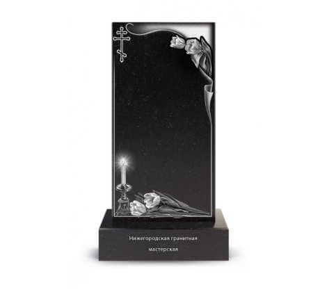 Гравировка на памятник В-23 с тюльпанами, рамкой, крестом