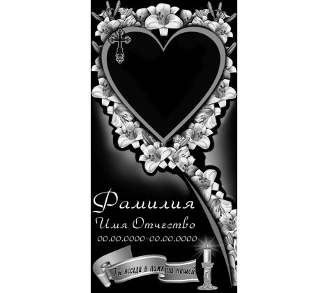 Гравировка на памятник В-14 сердце с цветами