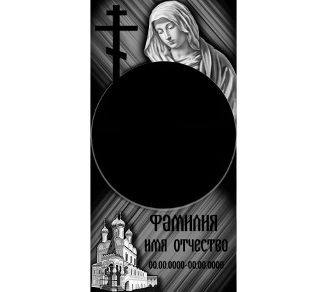 Гравировка на памятник В-36 со скорбящей женщиной и церковью