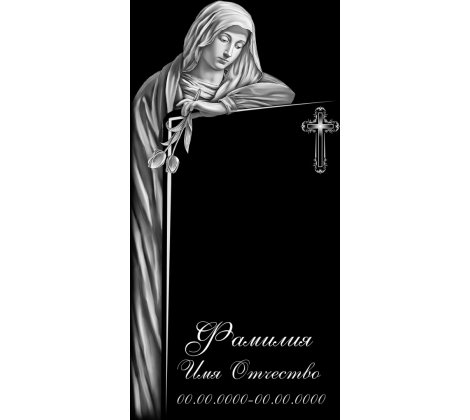 Гравировка на памятник В-34 со скорбящей женщиной и крестом
