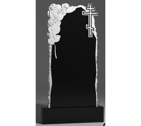 Купить резной памятник на могилу "Скала" с розами и крестом в Нижнем Новгороде с установкой. Доставка по городу и области. Низкие цены. Нижегородская гранитная мастерская ☎ +7-920-056-05-92